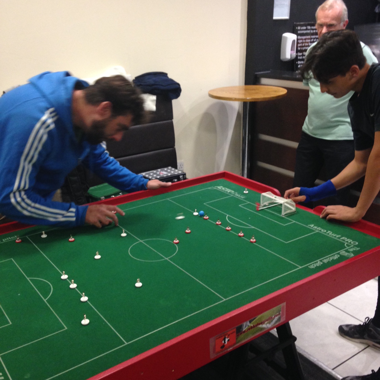 Group A consisting of Andrew B, Gus, James and Gareth saw a total of 26 goals scored. James playing his first competition at the tender age of 9 managed to get on the score sheet and against a very in form Andrew B. Andrew topped the group with 3 wins and only conceding twice, with Gus runner up, with Gareth 3rd and James in 4th.Group B saw Giuseppe, Rik, Shane and Wil fight it out, and this group was a lot closer. The top two, Rik and Giuseppe who fought out a 0-0 draw finished with 5 points each, Wil getting a very credible 2-2 draw with Rik, and Shane doing well to keep Giuseppe to 1-1.
