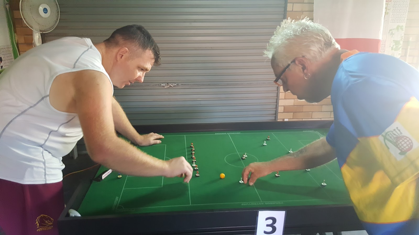 Chris Thorn took on Kostas Barbaris In the 2nd game of the Quarter finals and yet again remained water tight at the back and the veteran 74yr old dominated and took the lead just before Half time with a wonderfully constructed goal of sheer patience that paid off. In the second half Kostas put Thorn under pressure but could not break down the defence and half way through the half Thorn added another beauty to join his club mate Mcnulty in the Semi Finals. In the 3rd game of the Quarter Finals local Australian Greek lad Terry Koutzas faced Melbourne girl and current Ladies No 1 Beth Eveleigh, again another very tight match was played out with Beth remaining extremely organised at the back and they headed into Half Time at 0-0, Koutzas finally broke away after a sustained period of pressure mideay through the second half and although Beth rallied she could not equalize and Koutzas advanced into the Semi Finals. In the 4th and final Quarter Final Richard Wilson was pitted against Yago Dzelalija and another classic encounter was evident with the first half ending 0-0 with each player going close on numerous occasions, in the 2nd half Wilson and his dangerous Tokas smashed in an unstoppable shot that nearly took the net out and Yago crashed out after such a valiant effort in another cracker.