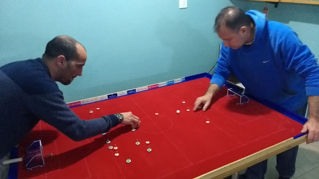 Four in for this month's WASPA tournament and it was a family affair with recent recruits, Vince and Ray bringing along their dad, Louis. Louis is the owner of possibly the finest subbuteo stadium in Australia and played his first game in 1961!