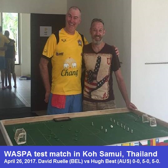 Today was another historic day for WASPA. The first ever WASPA test match in Thailand took place in Koh Samui where David Ruelle, former FISTF European champion from Belgium, was happy to meet Australia's Hugh best for some games.